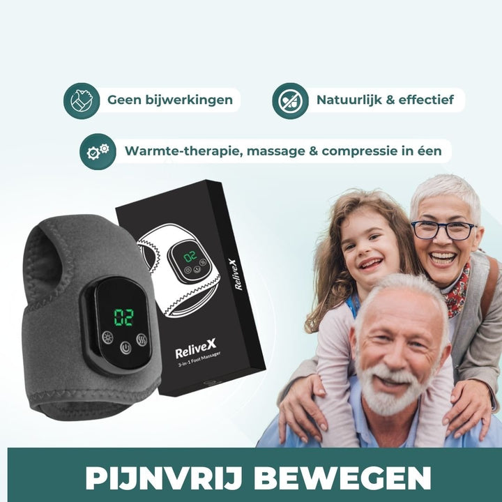Ervaar in 15 minuten per dag minder pijn, zwelling en tintelingen. De combinatie van warmte, massage en zachte compressie stimuleert je doorbloeding en geeft rust in je voeten – gewoon thuis vanuit je stoel.