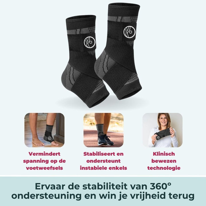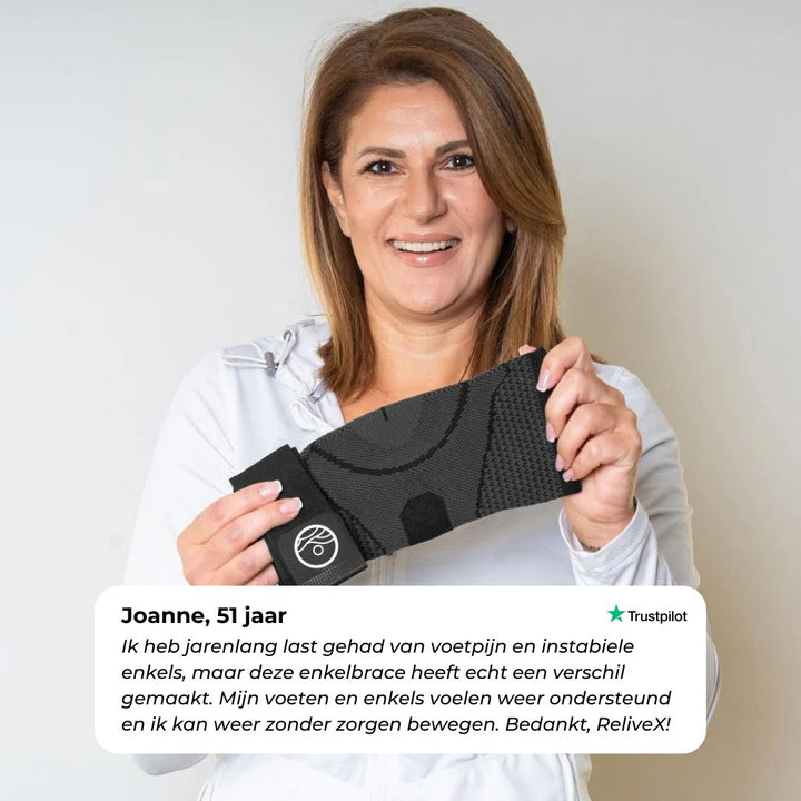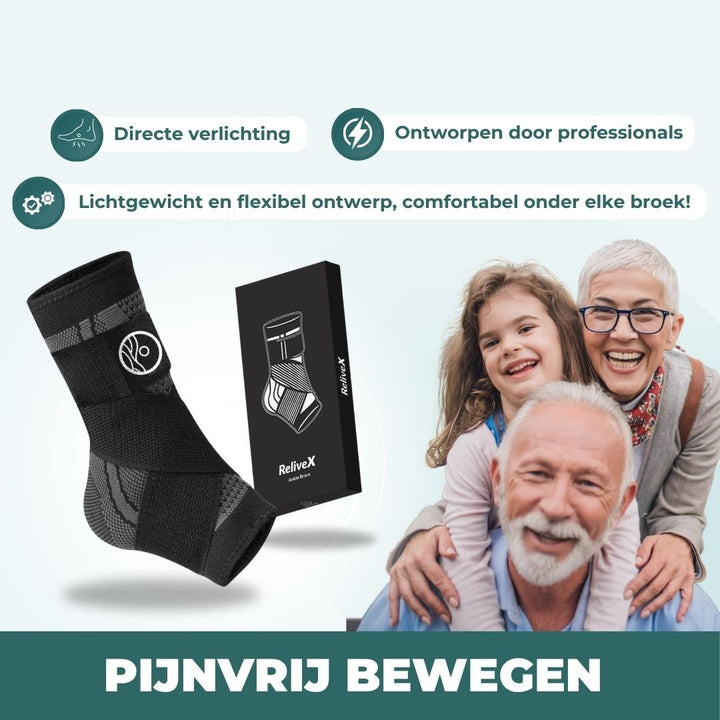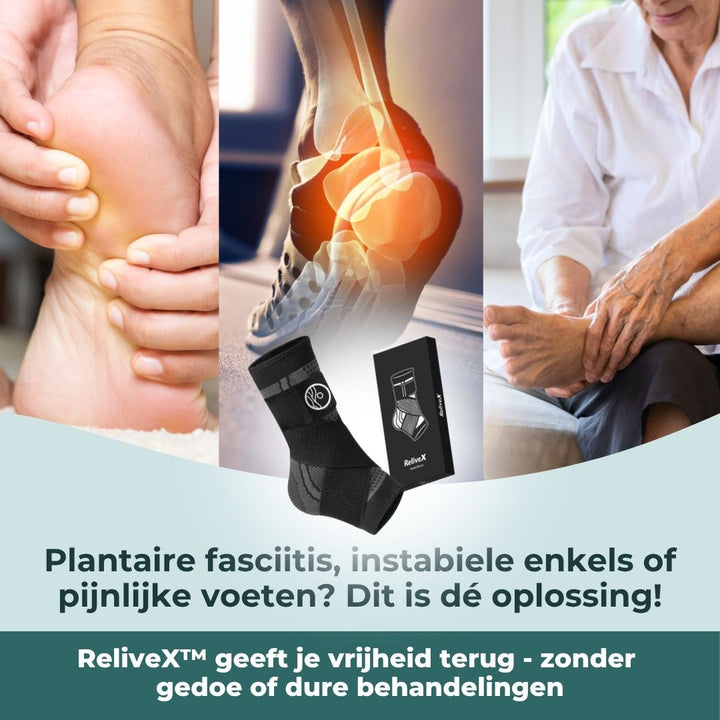 Plantaire fasciitis, instabiele enkels of pijnlijke voeten? De ReliveX™ Compressie Enkelbrace biedt optimale ondersteuning en verlichting bij elke stap. Het vermindert spanning op de voetweefsels, stabiliseert de enkels en helpt ongemak te verlichten.