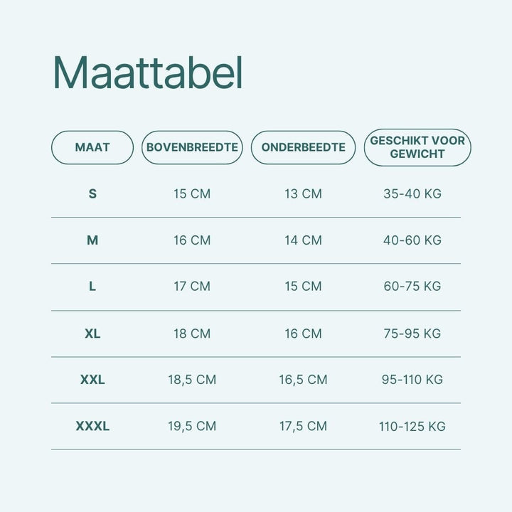 Maat S, Maat M, Maat L, Maat XL, Maat 2XL, Maat 3XL |