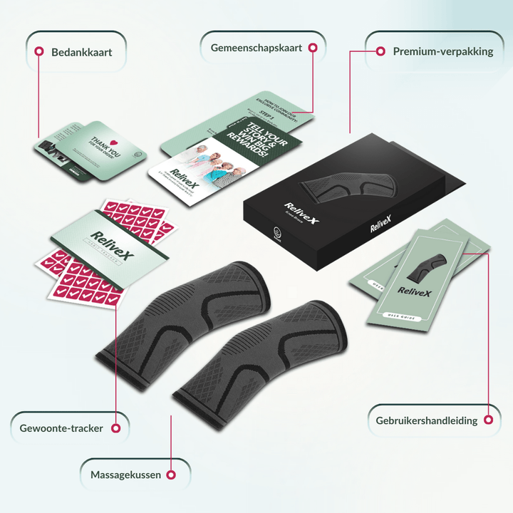 Voel je je beperkt door artrose, zwelling en stijfheid? Mis je de vrijheid om moeiteloos te bewegen en je dagelijkse activiteiten zonder pijn te doen? De ReliveX™ KnieBrace geeft je de ondersteuning die je nodig hebt om weer soepel en zorgeloos te bewegen – elke stap voelt lichter, elke dag comfortabeler.