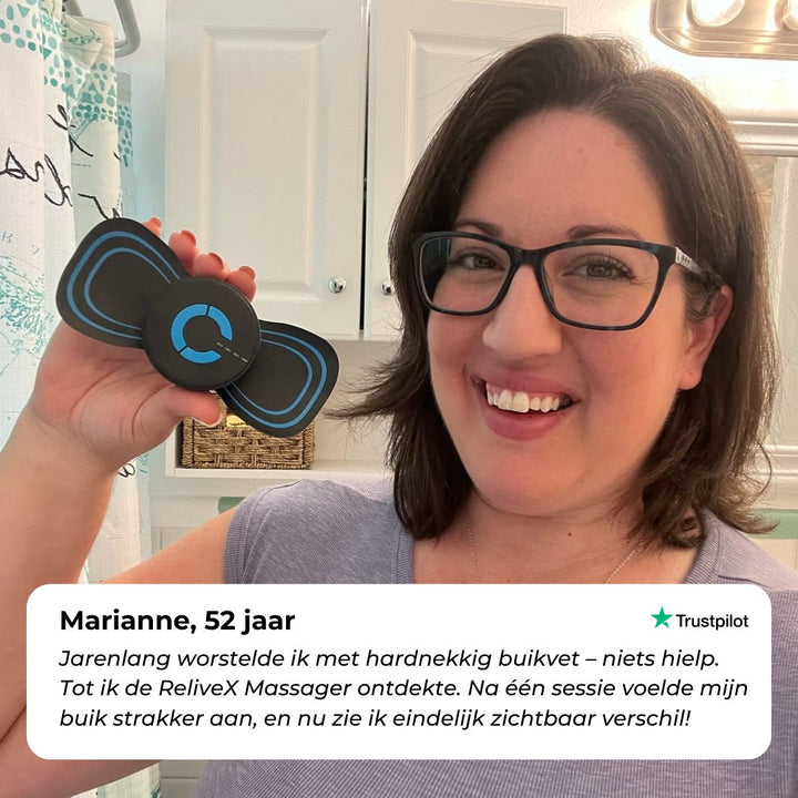 Verlies hardnekkig vet en activeer je spieren – zonder intensieve workouts of diëten. De ReliveX Massager stimuleert diepgelegen spiervezels met NMES-technologie, waardoor je stofwisseling versnelt en je lichaam vet efficiënter verbrandt – gewoon thuis, in 15 minuten per dag.