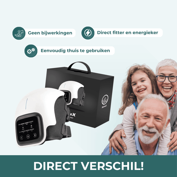 Laat pijn je leven niet beheersen - verlicht kniepijn in 15 minuten per dag. Brandende, stekende kniepijn of last van artrose? De ReliveX™ 3-in-1 Kniemassager combineert roodlicht-, warmte- en massagetherapie om pijn te verlichten en je mobiliteit te verbeteren – zonder medicijnen of dure behandelingen.